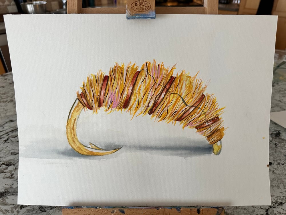 By isolating each fly against a simple background, the work invites attention to line, texture, and form — the careful construction that makes these patterns effective in the water. The marks are loose and expressive, reflecting the imperfect, human nature of fly tying and fishing itself.